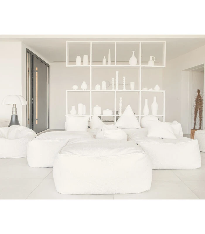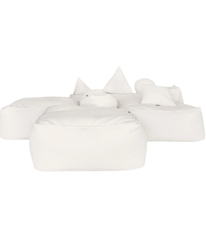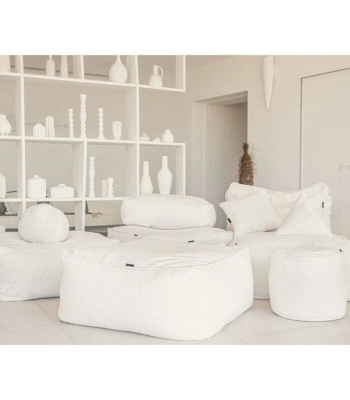 4 modulaire poefs geven je de vrijheid om de combinatie van je dromen te bouwen en zijn gemakkelijk te verplaatsen en aan te passen als je behoeften veranderen. Styrofoam balvulling. Een collectie die u warm zal houden met deze ecruwitte bouclette stof die rustiek combineert met een valse gebreide look voor een bij uitstek cocooning effect. Deze zachte collectie is een uitnodiging om te ontspannen en past perfect in uw interieur.