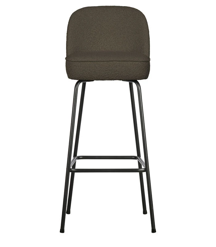 Het materiaal van de Colmar bouclé stof speelt in op de laatste trend: zachte materialen. De stof is comfortabel en heeft een elegante textuur. Onze Colmar bouclé heeft een Martindale van 100.000, dat betekent dat de stof geschikt is voor intensief gebruik. De dichte weeftechniek zorgt voor de sterkte van de stof, dit maakt dat de bouclé niet snel zal slijten of scheuren. Ook heeft elke kleur een hoge kleurvastheid, maar het is aangeraden om direct zonlicht te vermijden om kleurnuances te voorkomen. Het onderstel van de Vogue barstoel is gemaakt van metaal met een matzwarte poedercoating. Het frame van de zitting is opgebouwd uit een combinatie van spaanplaat en multiplex. De zitting bevat elastische riemen en een T3542 foam wat zorgt voor een iets stevig zitcomfort wat urenlang een comfortabele zitplaats verzorgt. De rugleuning is gevuld met een T2120 foam.