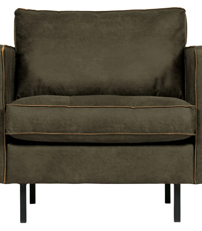 De Rodeo Classic fauteuil is opgebouwd uit een combinatie van massief hout [fsc], multiplex [fsc], spaanplaat [fsc], polyurethaan schuim met een dichtheid van 30 kg/m3 en een zigzag vering. De rugleuning bestaat uit een combinatie van 70% gesneden schuim en 30% siliconen. Deze Rodeo is bekleed met een lederlook. Onze Copa lederlook heeft een unieke uitstraling en is door het gebruik van leer restanten een duurzame keuze! De lederlook bestaat uit 70% vezels van rundleder, 30% polyester en heeft een Martindale van 30.000. Het materiaal is opgebouwd uit twee onderdelen: de onderlaag bestaat uit gerecyclede leervezels, wat zorgt voor de natuurlijke uitstraling. De bovenste laag is een polyester afdeklaag die het leer beschermt en oneffenheden voorkomt. Hierdoor wordt het een stevige combinatiestof. De microvezel is gebreid van zeer kleine, synthetische vezels. Deze productietechniek zorgt voor de stevigheid en een fijn, zacht gevoel. De stof is zeer kleurvast. Tijdens het gebruik zal het uiterlijk en de structuur van de stof zijn natuurlijke kenmerken meer laten zien, dit verandert niks aan de duurzaamheid en kwaliteit.