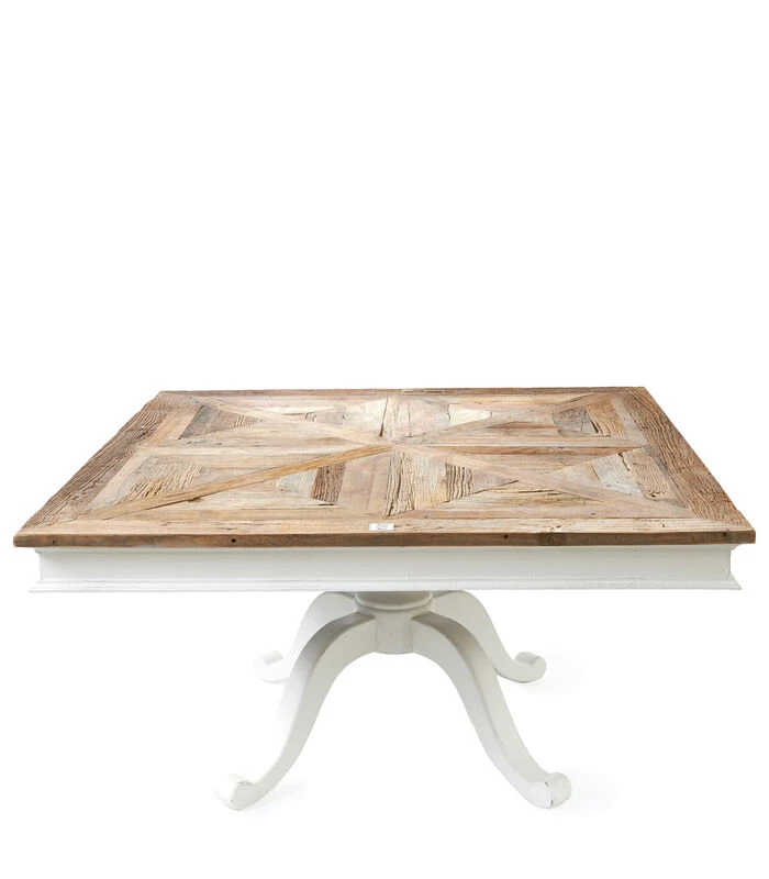 Het bovenblad van deze tafel is geïnspireerd op antieke kasteelvloeren. De kleinste maat tafel is handig voor een ‘just the two of us’ hoekje. Twee naast elkaar geeft een mooie eettafel. Verkrijgbaar in diverse maten: 70x70x76 cm, 100x100x78 cm, 150x150x78 cm.