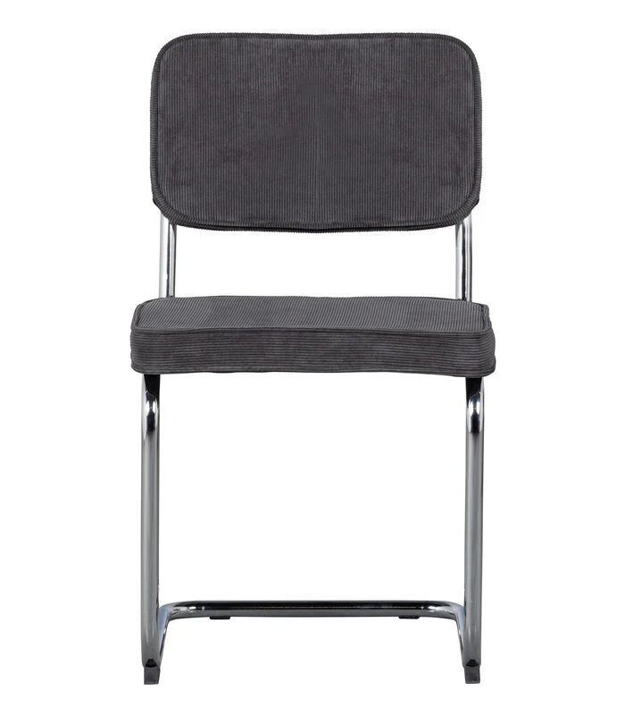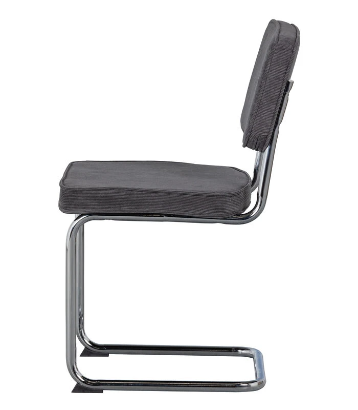 Deze comfortabele buisframe stoel is een aanwinst voor iedere eethoek. Vanwege het slanke model en de stevig zitting is deze eetkamerstoel perfect voor lange avonden aan de eettafel. De antraciet gekleurde ribstof voelt zacht aan en is opgebouwd uit 100% polyester, dit maakt de stof eenvoudig in onderhoud en geschikt voor intensief woongebruik.