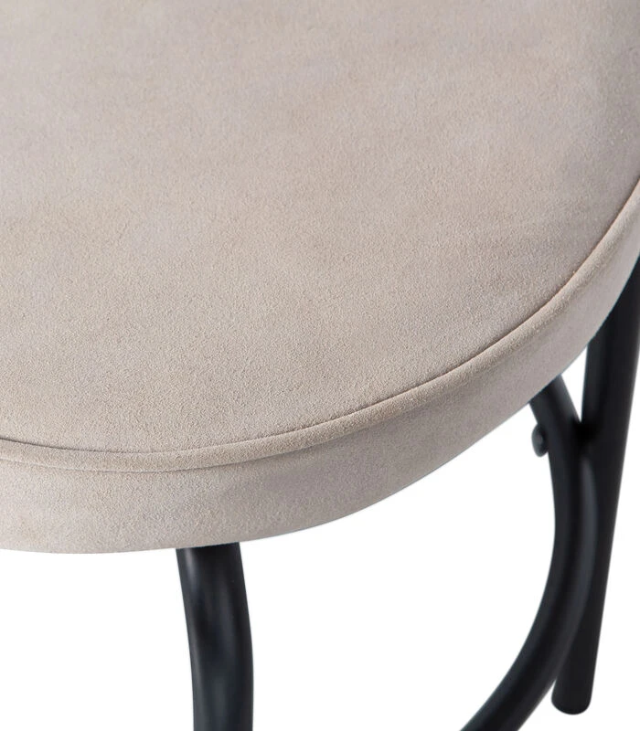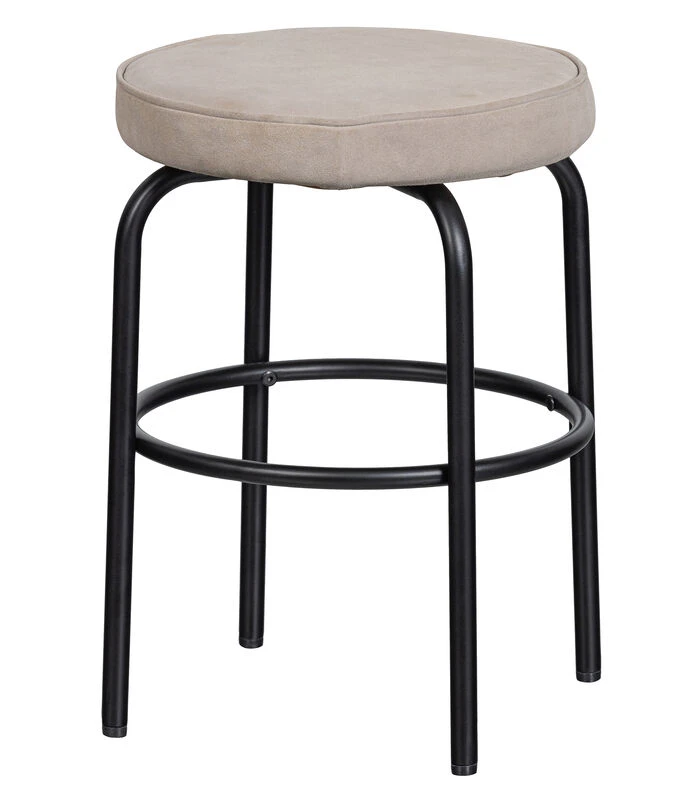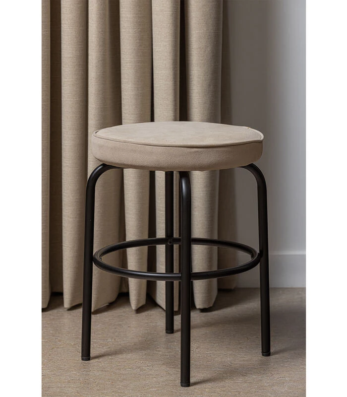 De stijlvolle kruk is bekleed met een microvezel leder met een zachte grip en matte uitstraling. Het onderstel is vervaardigd uit metaal met een lichtglanzende, zwarte poedercoating. Het metaal uit onze collecties kent diverse afwerkingen, zoals: een poedercoating en messing/antique brass. Een poedercoating zorgt voor een luxueuze matte uitstraling en beschermt het metaal levenslang. Een poedercoating is een lak welke met behulp van hoge temperaturen aan het metaal gehecht wordt.
