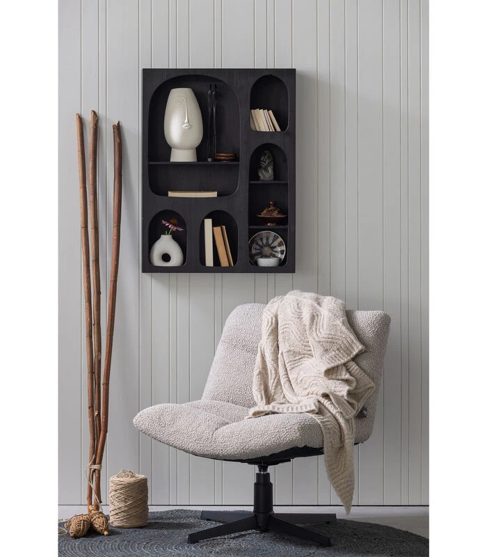 WOOOD Exclusive Vinny Draaifauteuil – Bouclé – Zand – 75x80x75 cm (bxhxd) Met deze Vinny draaifauteuil van het Nederlandse merk WOOOD Exclusive haal je een heerlijk comfortabele zitplaats in huis. Vinny is bekleed met een superzachte bouclé stof van 100% polyester, wat de draaifauteuil zeer eenvoudig te onderhouden maakt. De Vinny heeft een zwart, metalen onderstel met vier poten en een soepel draaisysteem. De schuimvulling met een hoog zitcomfort is perfect voor een genietmoment met een goed boek! De Vinny draaifauteuil heeft een totaalhoogte van 80 cm, het breedste en diepste gedeelte meet 75 cm. De zithoogte is 48 cm en zitdiepte 52 cm, loungen maar! De zitbreedte is 75 cm, de rugleuning is 32 cm hoog en 12 cm dik. Het metalen onderstel is 28 cm hoog en 51 cm breed en diep, het draaisysteem heeft een ø van 6 cm en elke poot heeft een lengte van 34 cm. De draaifauteuil heeft een maximale draagkracht van 120 kg. Artikelkenmerken