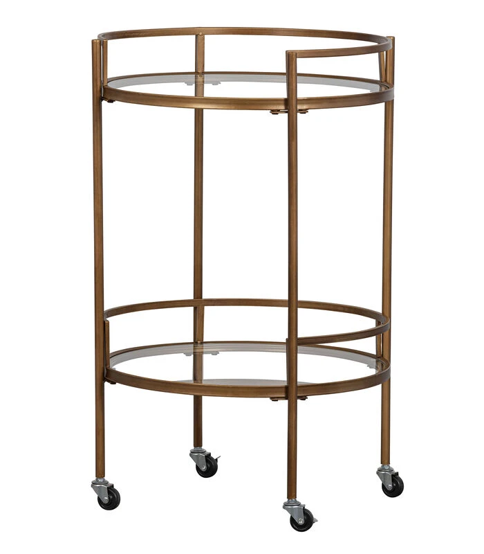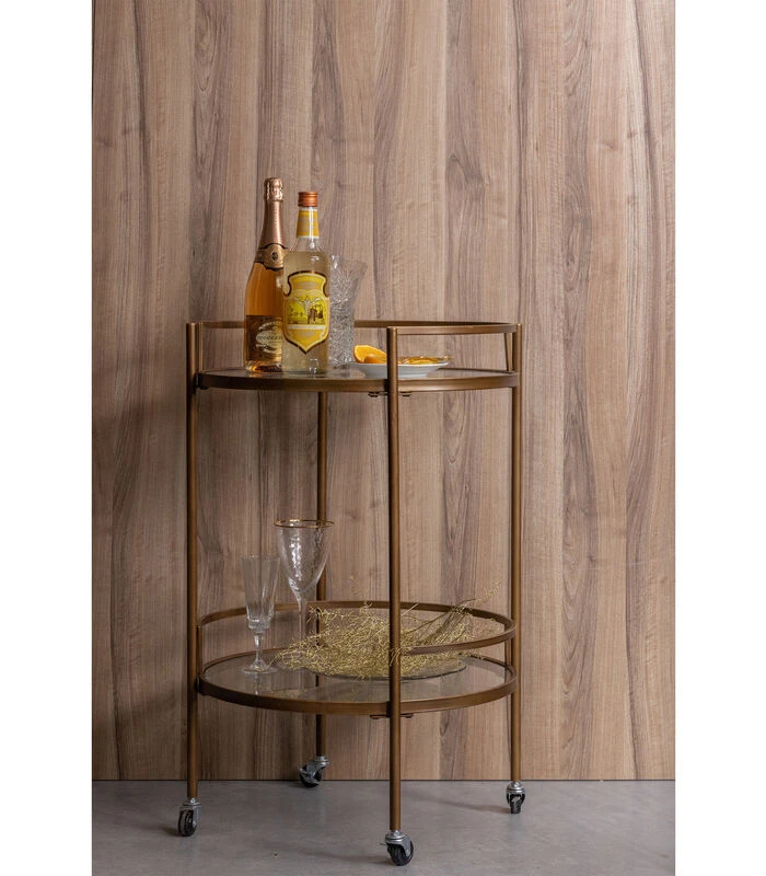 De Zora trolley uit de collectie van het Nederlandse merk WOOOD Exclusive is ideaal voor de items die een mooie presentatie verdienen. Zora biedt een stijlvol podium aan bijvoorbeeld een vaas met je favoriete bloemen of een klassieke karaf met whisky en passende glazen. Door het sterke metalen frame is de Zora zeer stabiel. De vier wielen zijn geschikt voor het rollen over harde vloeren, op twee van deze wielen zit een rem. De twee glazen legplanken geven de Zora een tijdloze, trendvolle uitstraling.