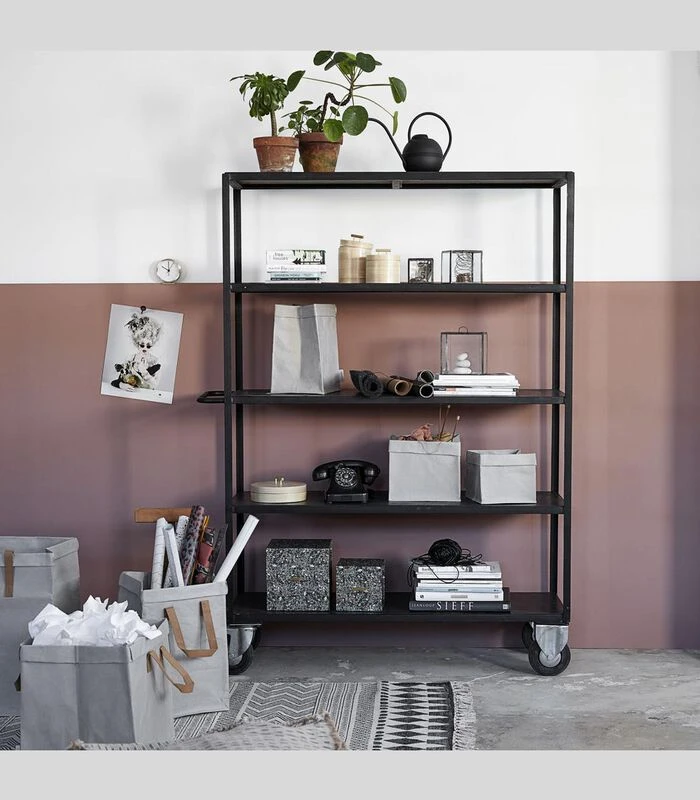 Wie heeft er geen extra opbergruimte nodig? Met deze mooie plank van House Doctor krijgt u een praktische opbergoplossing met vijf planken. Het toestel is uitgerust met wielen, waarvan er twee geremd zijn. Dankzij de wielen kunt u de plank gemakkelijk verplaatsen als dat nodig is. De plank is gemaakt van een mooie combinatie van ijzer, multiplex en mangohout. Het is perfect voor het opbergen van keukengerei, kookboeken en mooie snuisterijen in uw woonkamer of kantoor.