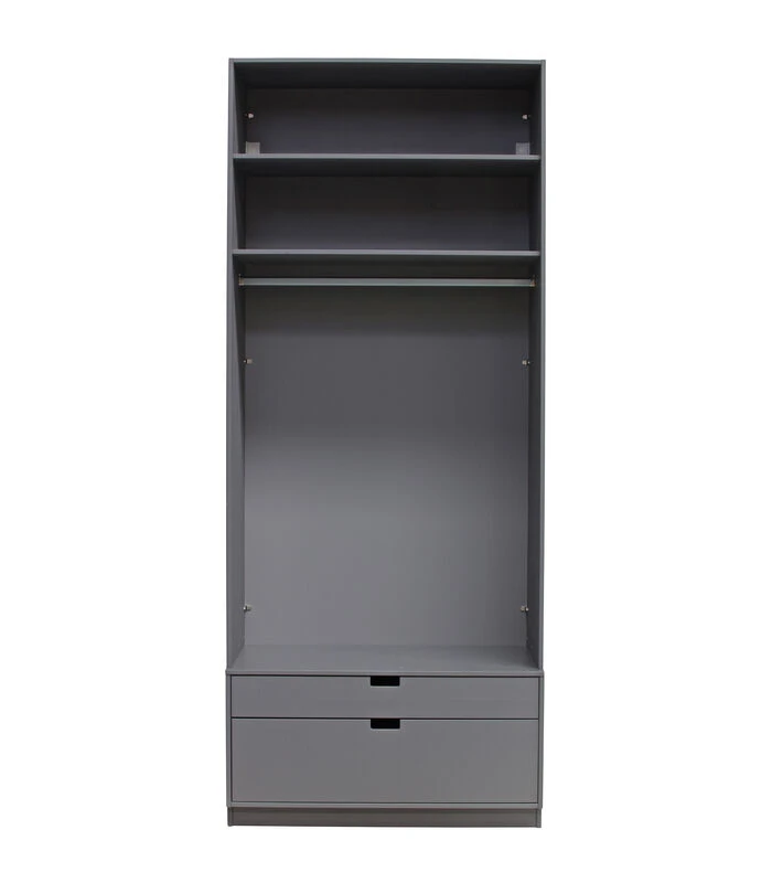 SKIK heeft een luxe, stevige en stijlvolle look. Een moderne en royale kast dat is deze SKIK garderobekast (H 231 x B 95 x D 62 cm). De SKIK kledingkast is extra hoog (231 cm) voorzien van twee deuren met verticale gefreesde lijnen. Daaronder bevinden zich twee praktische lades van ongelijke hoogte (H 8,8 cm en H 21,5 cm). De deuren en lades zijn standaard voorzien van softclose.