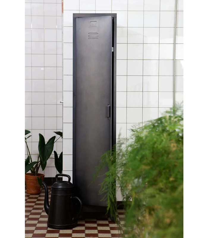 Deze stoere Cas lockerkast van het merk WOOOD biedt lekker veel opbergruimte voor al jouw spullen. De kast heeft één grote lockerdeur met daarachter drie legplanken. Deze industriële metalen kast is stoer, eigentijds en in veel ruimtes te gebruiken. Naast deze één–deurs uitvoering is deze lockerkast Cas ook met drie deuren verkrijgbaar in de zelfde afmeting als de één–deurs kast. Plaats meerdere lockerkasten Cas met één deur en drie deuren naast elkaar en maak zo een industriële stoere en eigentijdse kastenwand.