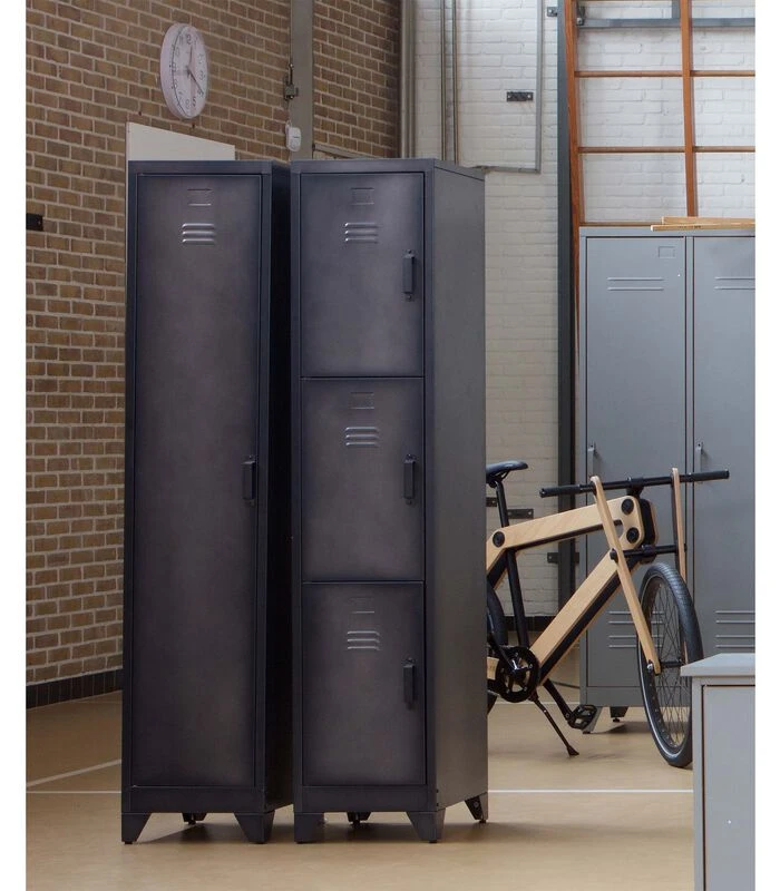 Plaats meerdere lockerkasten Cas met drie deuren en/of één deur naast elkaar en maak zo een industriële stoere en eigentijdse kastenwand.