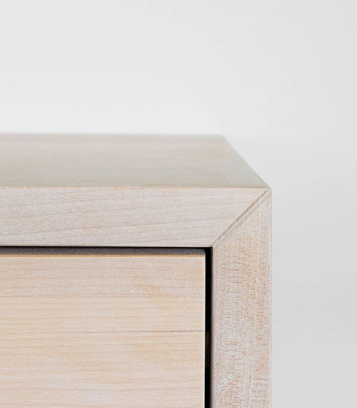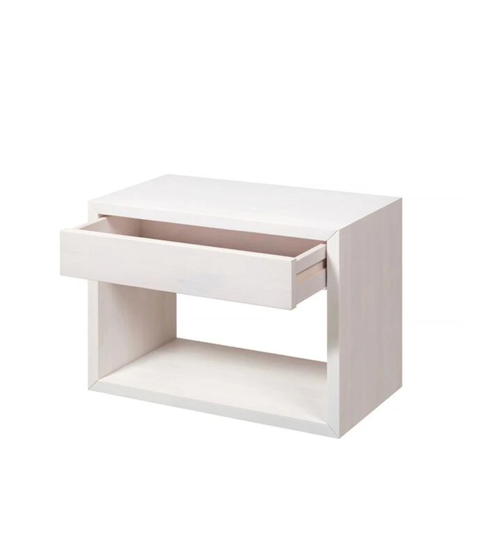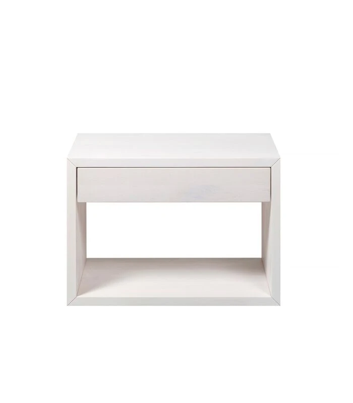 Het nachtkastje is gemaakt van massief berkenhout met een witte afwerking. Met een strakke, minimale stijl toont het de schoonheid van de natuurlijke nerf van het hout. Het heeft een handige lade en een plank voor het opbergen van uw favoriete boeken. Compact en functioneel het kan ook aan de muur worden gemonteerd en gebruikt als zwevende plank / lade niet alleen in de slaapkamer, maar ook rond het huis. Dit product is gemaakt van natuurlijk massief berkenhout, elk stuk is uniek qua kleur, natuurlijke kenmerken, nerfpatronen en afwerking. Het is dus mogelijk dat u enkele verschillen tussen artikelen van eenzelfde productlijn ziet; dit is onderdeel van de natuurlijke schoonheid van onze producten. Voor het binnenmateriaal van het product kunnen andere soorten hardhout worden gebruikt.