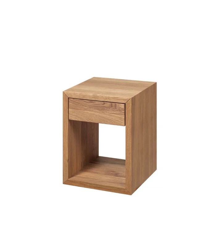 Het nachtkastje is gemaakt van massief eikenhout met een natuurlijke olieafwerking. Met een strakke, minimale stijl toont het de schoonheid van de natuurlijke nerf van het hout. Het heeft een handige lade en een plank voor het opbergen van uw favoriete boeken. Compact en functioneel het kan ook aan de muur worden gemonteerd en gebruikt als zwevende plank / lade niet alleen in de slaapkamer, maar ook rond het huis. Dit product is gemaakt van natuurlijk massief eikenhout, elk stuk is uniek qua kleur, natuurlijke kenmerken, nerfpatronen en afwerking. Het is dus mogelijk dat u enkele verschillen tussen artikelen van eenzelfde productlijn ziet; dit is onderdeel van de natuurlijke schoonheid van onze producten. Voor het binnenmateriaal van het product kunnen andere soorten hardhout worden gebruikt.