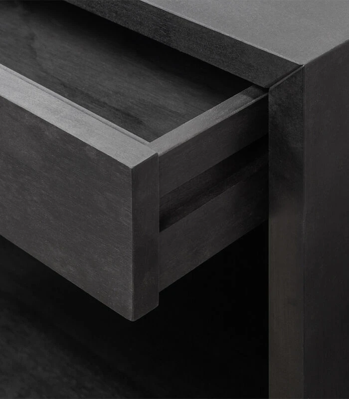 Het nachtkastje is gemaakt van massief berkenhout met een zwarte afwerking. Met een strakke, minimale stijl toont het de schoonheid van de natuurlijke nerf van het hout. Het heeft een handige lade en een plank voor het opbergen van uw favoriete boeken. Compact en functioneel het kan ook aan de muur worden gemonteerd en gebruikt als zwevende plank / lade niet alleen in de slaapkamer, maar ook rond het huis. Dit product is gemaakt van natuurlijk massief berkenhout, elk stuk is uniek qua kleur, natuurlijke kenmerken, nerfpatronen en afwerking. Het is dus mogelijk dat u enkele verschillen tussen artikelen van eenzelfde productlijn ziet; dit is onderdeel van de natuurlijke schoonheid van onze producten. Voor het binnenmateriaal van het product kunnen andere soorten hardhout worden gebruikt.