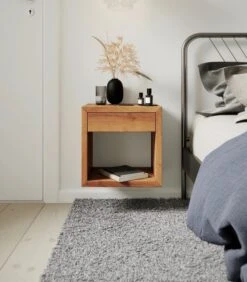 Zwevend Nachtkastje HUGO Met Brede Lade In Berkenhout